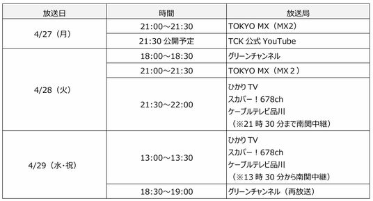 本番組は、4月27日(月)のTOKYO MX(MX2)を皮切りに羽田盃当日(4/29)までスカパー!678chやグリーンチャンネルなどで放送されるほか、TCK公式YouTubeでも公開からいつでもご覧いただけます。