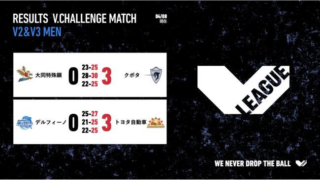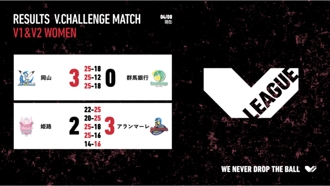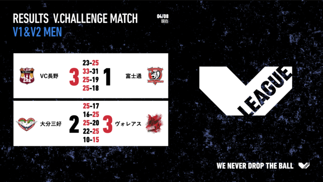バレーボール国内最高峰リーグ V.LEAGUE【4月8日の試合結果】