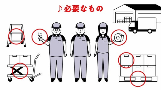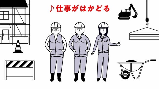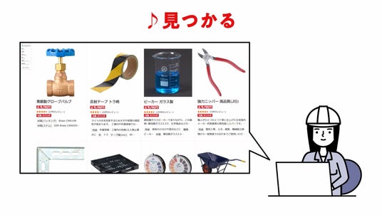 今回の新CMでは、おなじみの「さんはい、モノタロウ~」の歌を編曲したものとともに、「見つかる、スグ来る、必要なもの、仕事がはかどる、モノタロウ」という、お客様へのヒアリングから生まれたキャッチコピーに、様々な現場をイメージしたわかりやすいイラストと音楽を合わせ、あらゆる現場でお使いいただけることを表現しています。