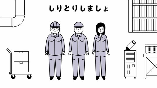 「しりとりしましょ」で始まり、それぞれの現場で必要となる商品を「しりとり」でコミカルに紹介しています。