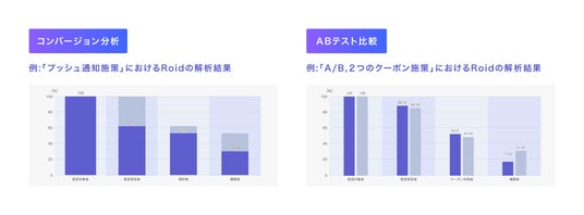 『ModuleApps Roid』は、企業が持つ購買データを投入することで、ModuleAppsを利用して実行した施策の開始段階からコンバージョン(購入)までを、チャート形式で表示・分析可能なツールです。