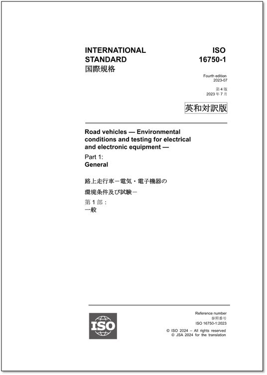 ISO 16750-1:2023 路上走行車-電気・電子機器の環境条件及び試験-第1部:一般 Road vehicles -- Environmental conditions and testing for electrical and electronic equipment -- Part 1: General《英語》税込価格:25,410円 A4判・22ページ