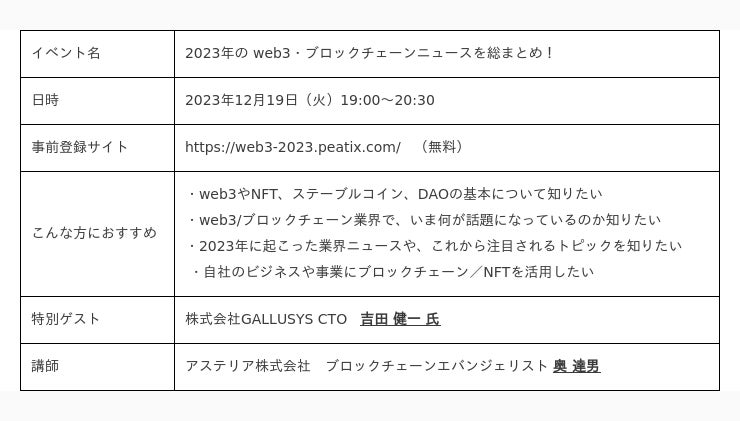 「2023年のweb3・ブロックチェーンニュースを総まとめ!」イベント概要