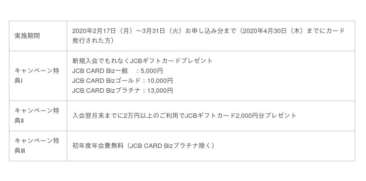 <JCB CARD Bizインターネット新規入会キャンペーン>