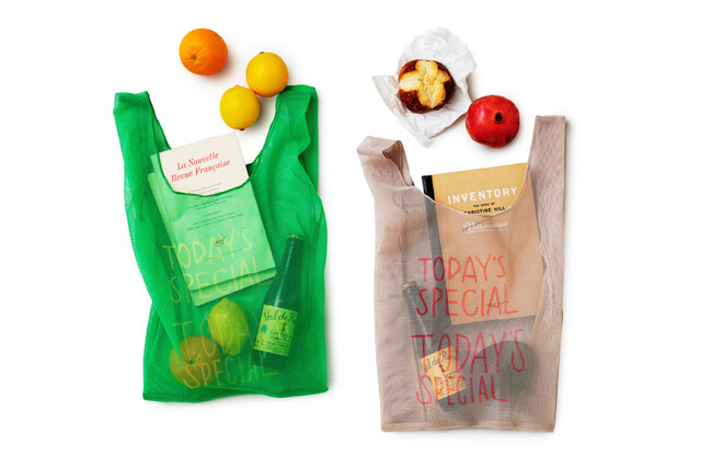 ショップバッグのデザインをそのままに「くり返し使える素材で、毎日使っていただけるように」と、オープンした時からつくり続けている、ブランドの原点とも言える マルシェバッグ。二子玉川店では、軽やかなメッシュ素材の「MARCHE BAG」各1,980円(税込)を2色の限定カラー、数量限定でご用意しております。