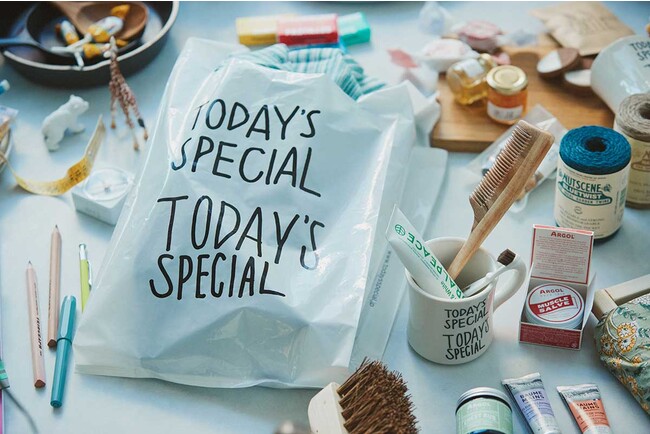 マーケットのような賑やかな店内では、今日使いたくなるものから、明日が楽しみになるもの。ずっと一緒にいたいものまで、うつわや食材、衣料品、本や植物など、さまざまな生活道具を扱います。ちょっとしたDIY 精神を持つことで、自分でできることが少しずつ増え、日常がより軽やかに、そして豊かなものになっていくように。今あるモノやいつものコトを、どうしたらもっとよくできるのか、移り変わる季節をどう楽しむのか。TODAY'S SPECIAL は、食することをテーマに「つくる、食べる、育てる、飾る、装う」など暮らしのアイデアを提案しています。ものをつくる人、使う人、伝える人の、楽しい循環のかたちをつくりながら、活気あるマーケットのような場所を目指し、今あるものに少しだけ手をかけてよりよく楽しむ工夫や、あたらしく何かを始めるきっかけを持ち帰っていただけるよう、季節ごとにさまざまな企画を展開していきます。