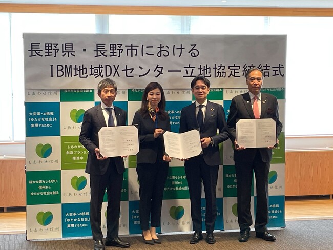 長野県(知事:阿部 守一)、長野県長野市(市長:荻原 健司)と日本アイ・ビー・エム株式会社(本社:東京都中央区、代表取締役社長:山口明夫、以下 日本IBM)は、地域のデジタル・トランスフォーメーション(DX)の推進、デジタル人材の育成、さらに長野県が推進する「信州ITバレー構想」における人材の集積など、地域経済振興のための協力関係を構築する拠点として「IBM地域DXセンター」の立地協定を締結しました。