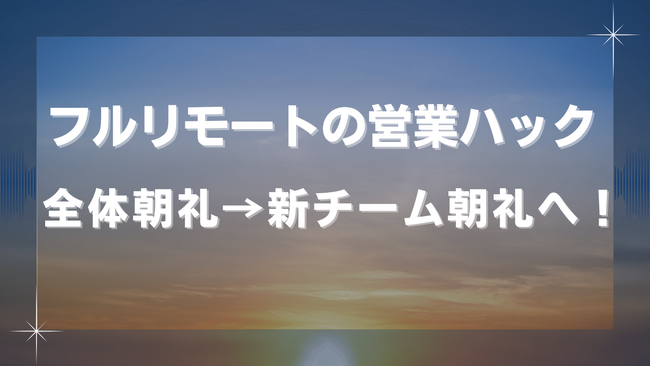 ・全メンバーがフルリモートで営業支援を行う株式会社営業ハック(本社:東京都港区・代表:笹田裕嗣)が全体朝礼制度を廃止、従来のチーム朝礼をリニューアルした形の新チーム朝礼に移行