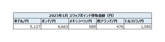 SBI FXトレード株式会社(本社:東京都港区、代表取締役社長:藤田 行生)は、2025年1月のスワップポイントの実績を公表しましたことをお知らせいたします。