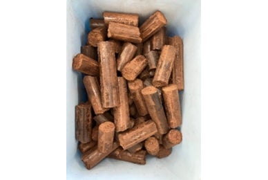 ・圧縮機で固形化させ、成形機で棒状に形を整え、規定のサイズにカットして加工完了