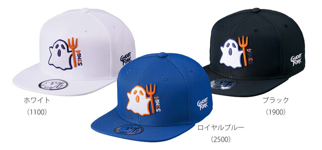 フロントパネルに千賀選手のアイコン『ゴーストフォーク』のイラストを立体刺しゅうで表現したフラットバイザーキャップ。サイズ調整可能なアジャスタータイプ。