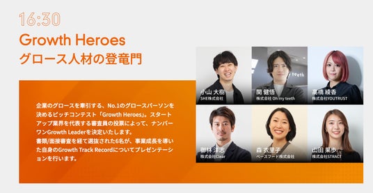 本カンファレンス内で行われる『Growth Heroes』は、ナンバーワンのGrowth Leaderを決定するピッチコンテストです。書類・面接審査を経て選抜されたファイナリストが、自ら事業成長を導いた実績(Growth Track Record)についてプレゼンテーションを行い、業界を代表する審査員によって優勝者が選出されます。