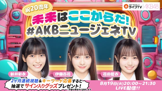 本企画は、国民的アイドルグループとして輝かしい歴史を刻んできたAKB48のデビュー20周年という記念すべき節目を、ファンの皆さまと共にお祝いしたいという想いから実現し、ライブTVならではのリアルタイムなコミュニケーションや、メンバーの素顔が垣間見える企画を通じて、特別な時間をお届けします。