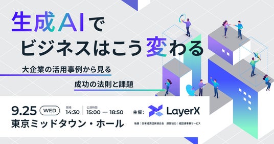 すべての経済活動のデジタル化を目指す株式会社LayerXは、2024年9月25日に「生成AIでビジネスはこう変わるー大企業の活用事例から見る成功の法則と課題」と題したカンファレンスを開催します。