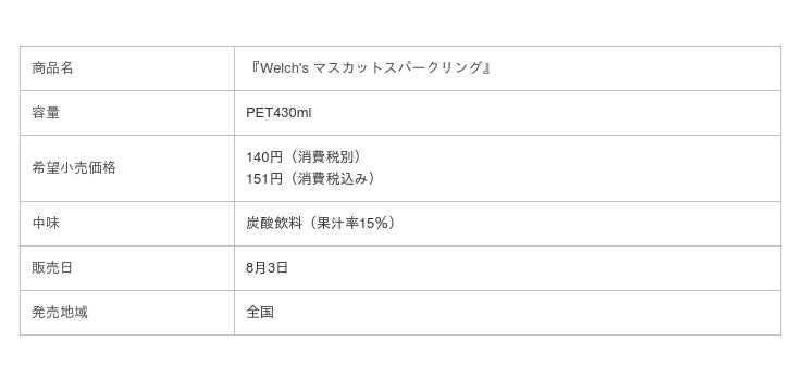 アサヒ飲料株式会社(本社 東京、社長 米女 太一)は、『Welch's マスカットスパークリング』PET430mlを8月3日より期間限定で全国発売します。
