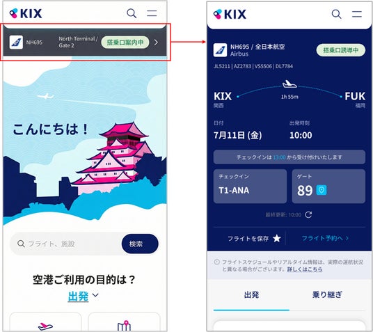 旅行の準備や搭乗の注意点、空港での過ごし方など役立つ情報を発信し、旅前から空港利用者をサポートします。また、搭乗予定のフライトをブックマークできる機能を追加予定※。出発前に自分のフライト情報を保存しておけば、何時にどのゲートに行けばよいのかすぐに確認できます。