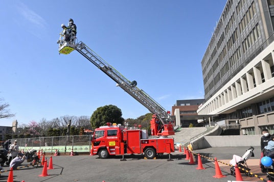 はしご車搭乗体験、水消火器体験、地震体験、ロープ渡り体験、給水車による給水体験など