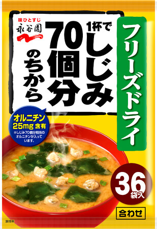 株式会社 永谷園(社長:成田 健一、東京都港区)は、1 食当たり25mg のオルニチンを含有した、フリーズドライ製法の粉末みそを使用した即席みそ汁「1 杯でしじみ70 個分のちからみそ汁粉末タイプ 36 袋入」(税抜1,431円)を、2023年9月4日(月)より、Amazon ほかEC サイトにて発売を開始いたしました。