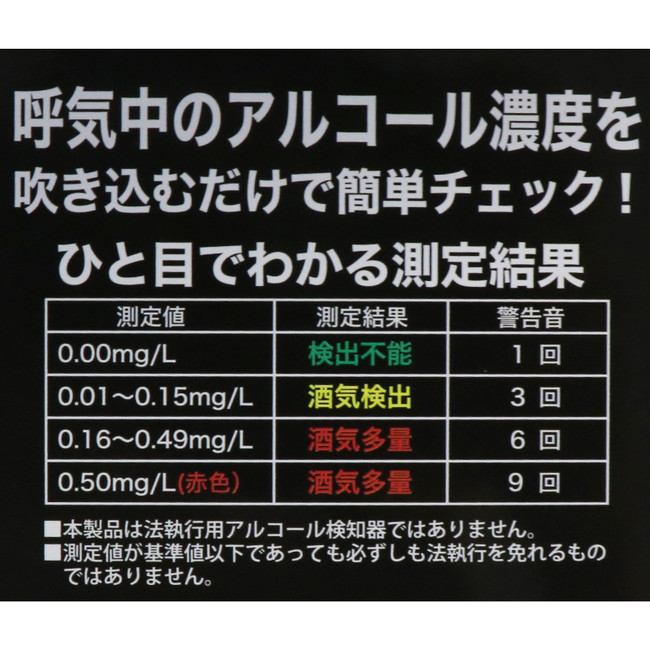 測定範囲:0.00~0.50mg/L(単位mg/L:呼気中アルコール濃度)