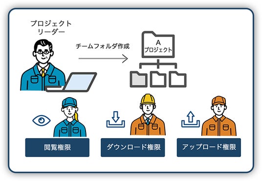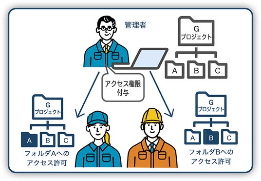 管理者は、金融部門のチームごとに、または外部の会計・税理士事務所や金融機関など、相手によってアクセス権限を柔軟に設定できます。権限がない他のチームのフォルダやファイルは、その存在さえも見ることはできません。