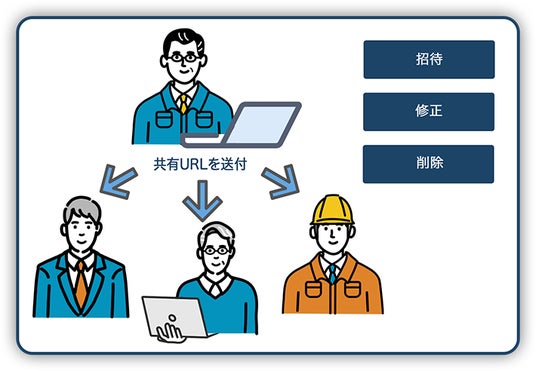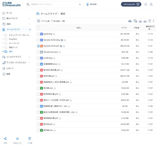 「AOS IndustryDX」で一元管理されたデータを権限を与えたものだけが共有できるので、煩雑なドキュメント管理の悩みもなく、セキュアにスピーディに共有と管理を実現できます。