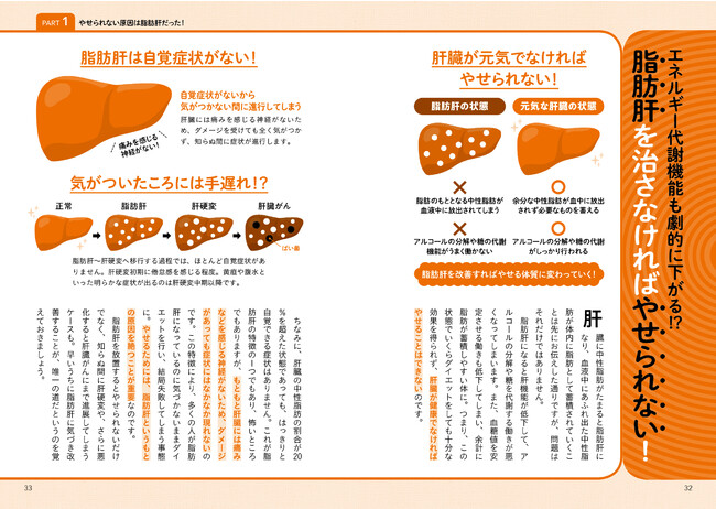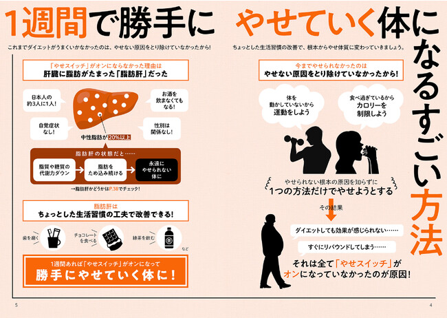 本書ではそんな脂肪肝をたった1週間で改善し、若い頃のような食べても太らない代謝機能をよみがえらせるすごい方法を紹介します。