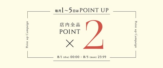 店内全品対象、ポイント2%アップお買い物いただけます。