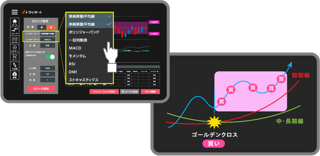 “えらぶ”機能はリスク評価のラベルやルールの説明を追加して選びやすく。“つくる”機能では操作性がアップ、チャート機関の選択肢が増えるなどさらにオリジナルのトレードルールが作りやすくなりました。