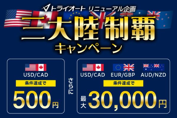 1. トライオートリニューアル企画!三大陸制覇キャンペーン