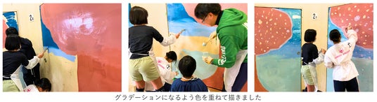 同校PTAからは、「40年という長い間子どもたちを育み、地域を見守った本校校舎に、何らかの感謝の気持ちとそれらを通した子どもたちの思い出づくり、創造性発露の機会となればと本イベントを開催しました。子どもたちは普段であればきれいにしなくてはいけない、と教え込まれた校舎の壁や、建具に自分の感性の趣くままにペイントをできるという機会に大変興奮し、真剣に向き合っての制作を行っておりました。特に最上級生である6年生は、自身の巣立ちと校舎の旅立ちを重ね、思いを馳せながらすばらしい集中力で取り組んでいたことが印象的でした。この度は塗料から刷毛、副資材に至るまで多くのご提供、ご協賛をいただき、本当に感謝しております」とコメントを頂きました。