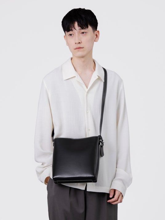 正方形に近い比率のコンパクトなボディは、水筒や長財布も入るサイズ。マチが小さめなので身体のラインになじみやすく、性別やスタイリングを問わず使えます。