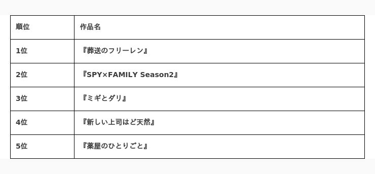 株式会社つみき(代表取締役社長:鈴木貴幸、本社:東京都目黒区)が運営する国内最大級の映画やドラマ、アニメのレビューサービス「Filmarks(フィルマークス)」は、サービス内のデータに基づいた「2023年秋クール 話題のアニメランキング」の集計結果を発表いたしました。