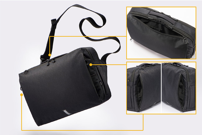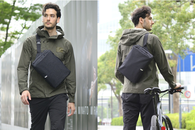 「密を避ける自転車通勤」「テレワークで自宅から打合せに外出」など、コロナ禍で働き方が変化するなか、昨今のミニマル志向やデジタル化で荷物量が減ったビジネスパーソンに向け、ビジネスリュックより小型で荷物をサッと取り出しやすい“ショルダーバッグ通勤”を提案すべく開発しました。「ハンスリーSDH」はカジュアルな雰囲気の杢調生地を使用することで、オフシーンでも持ちやすいデザインになりました。