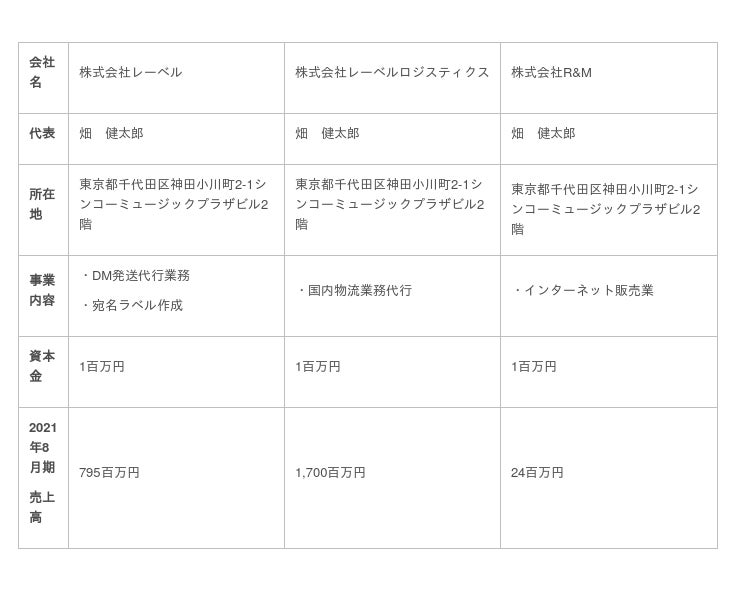 株式会社レーベルロジスティクス:https://label-logistics.jp/company/