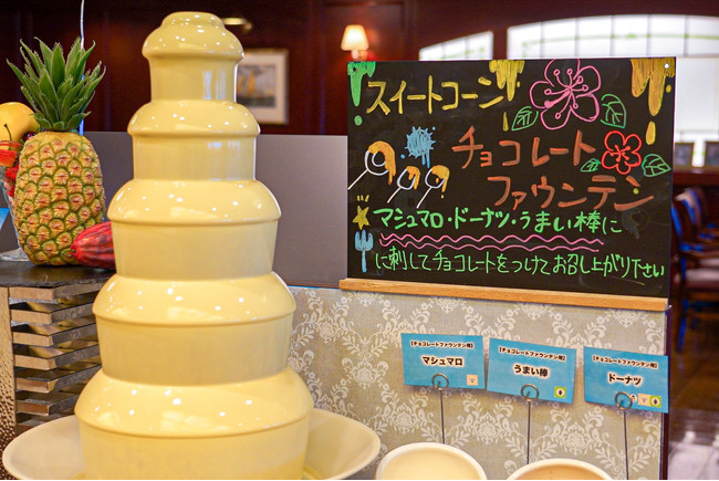 最後はスイーツで。地元の函館牛乳を使ったソフトクリームはもちろんのこと、目を引くのは「スイートコーンのチョコレートファウンテン」見て楽しい、食べて美味しいを締めくくる当バイキングを代表するオリジナルスイーツをぜひご賞味ください。