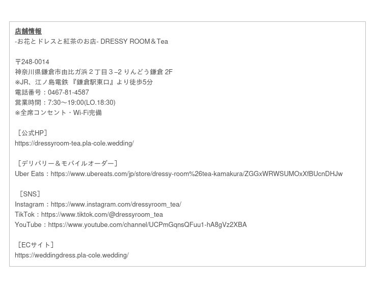 公式HP:https://dressyroom-tea.pla-cole.wedding/