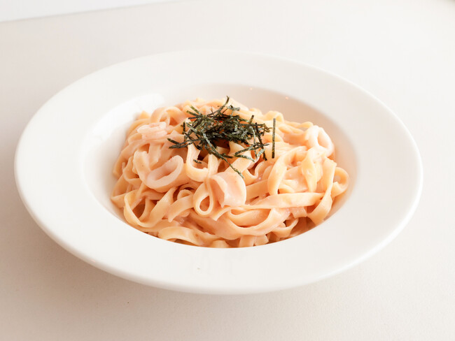 ピリ辛の明太子を使用したパスタ。イカがアクセントになり歯応えを感じられます。フィットチーネの麺にソースが絡んで美味しいパスタメニューです。