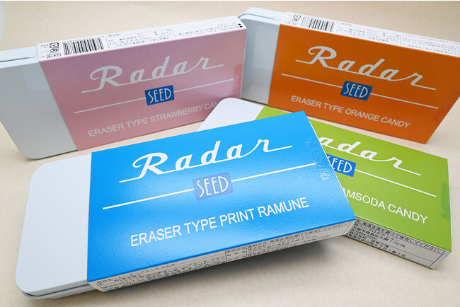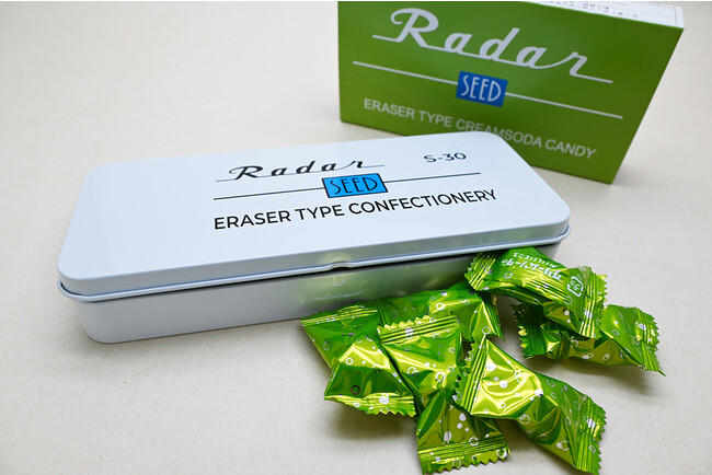世代を超えて愛されるレーダー(Radar)の消しゴム「SEED」がお菓子になって新登場!中身のお菓子を食べ終わった後の缶は、小物入れやペンケースとしてリユースしちゃおう♪