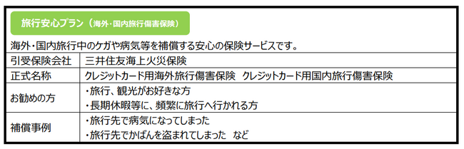 ※2:旅行安心プランは、従来よりカード付帯保険としてサービス提供している海外・国内旅行傷害保険です。