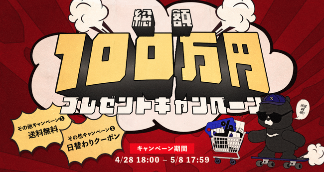 なんとキャンペーン期間中に商品を購入したお客様を対象に総計100万円をプレゼント!