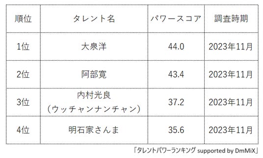 タレントパワーランキング supported by DmMiXは芸能人の情報を届けるエンタメメディア!!