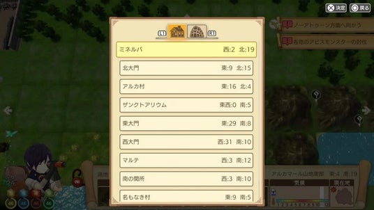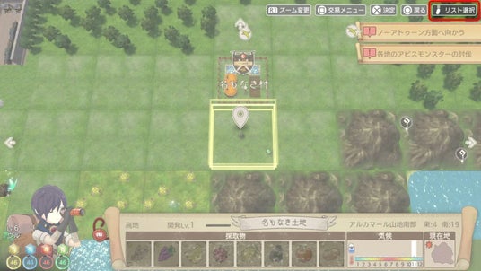 マップ画面の「リスト選択」ボタンから、発見済みの村や町、ダンジョンのリスト画面を表示できるようになりました。