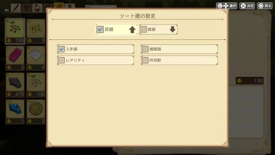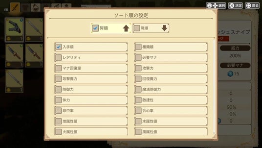 6. 装備やアイテムの一覧画面のソートの機能を拡充