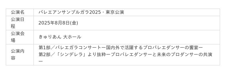 【バレエアンサンブルガラ2025・関東】マーティ株式会社(本社:東京都港区三田2-14-4 三田慶応ビジデンス1F)は、2022年より毎年大阪にて開催されているバレエアンサンブルガラ公演の、関東初演となる記念すべき公演です。