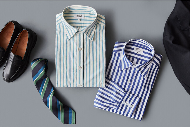 「イギリスにルーツを持つアイテムを現代のライフスタイルに合うよう再構築する」というテーマを掲げるBRITISH MADE(ブリティッシュメイド)オリジナルウェア コレクション。フィッティングの見直しや柔らかい芯地を採用することでビジネスシーンだけでなく、カジュアルダウンもできるニュースタンダードなドレスシャツ「ロンドン」に、新色ターコイズストライプと、ネイビーのロンドンストライプが再登場いたします。今回もディレクションは、スタイリスト 四方章敬さんに担当いただきました。