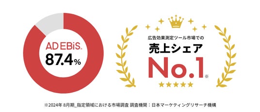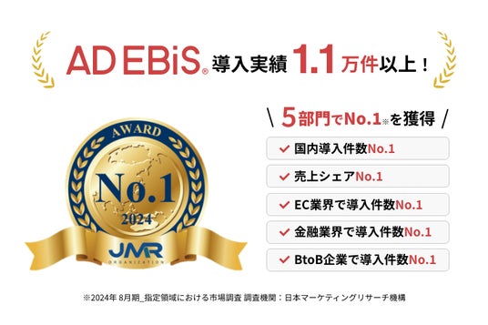 株式会社イルグルム(本社:大阪府大阪市北区 代表取締役:岩田 進、以下「イルグルム」)が提供する広告効果測定プラットフォーム「アドエビス」は、絆ホールディングス株式会社(本社:東京都新宿区 代表取締役社長 伊藤 宜範、以下「絆ホールディングス」)が2024年8月に国内で提供する広告効果測定ツールを対象に行った実績調査において、市場における『国内導入件数 No.1』『売上シェア No.1』『EC 業界で導入件数 No.1』『金融業界で導入件数 No.1』『BtoB 企業で導入件数 No.1』※を獲得したことをお知らせいたします。