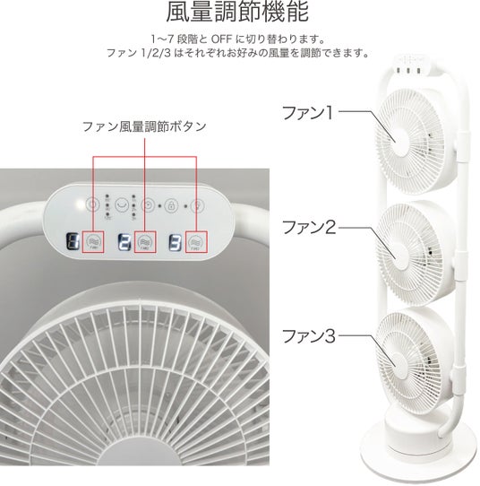3つのファンはお好みの角度へ調節可能です。(上下:手動 左右:自動)