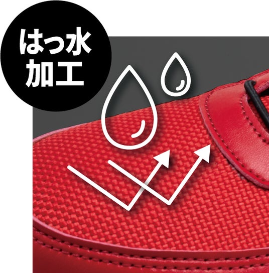 アッパーには「はっ水加工」を施し、水を弾いて汚れも防ぎます。