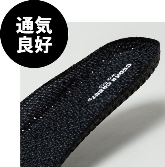 通気性の良いハニカム形状の中敷きを採用。ムレを逃して靴内環境を良好に保ちます。