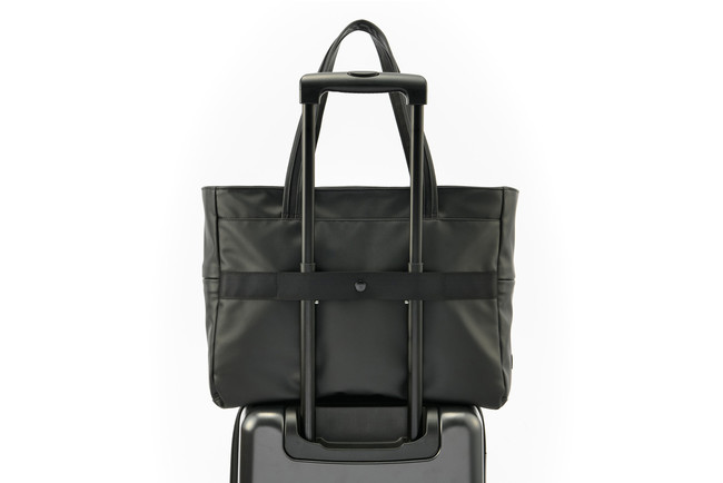 バッグ背面にはスーツケースに固定して持ち運べるセットアップベルトを搭載しており、ワーケーションにも活躍します。